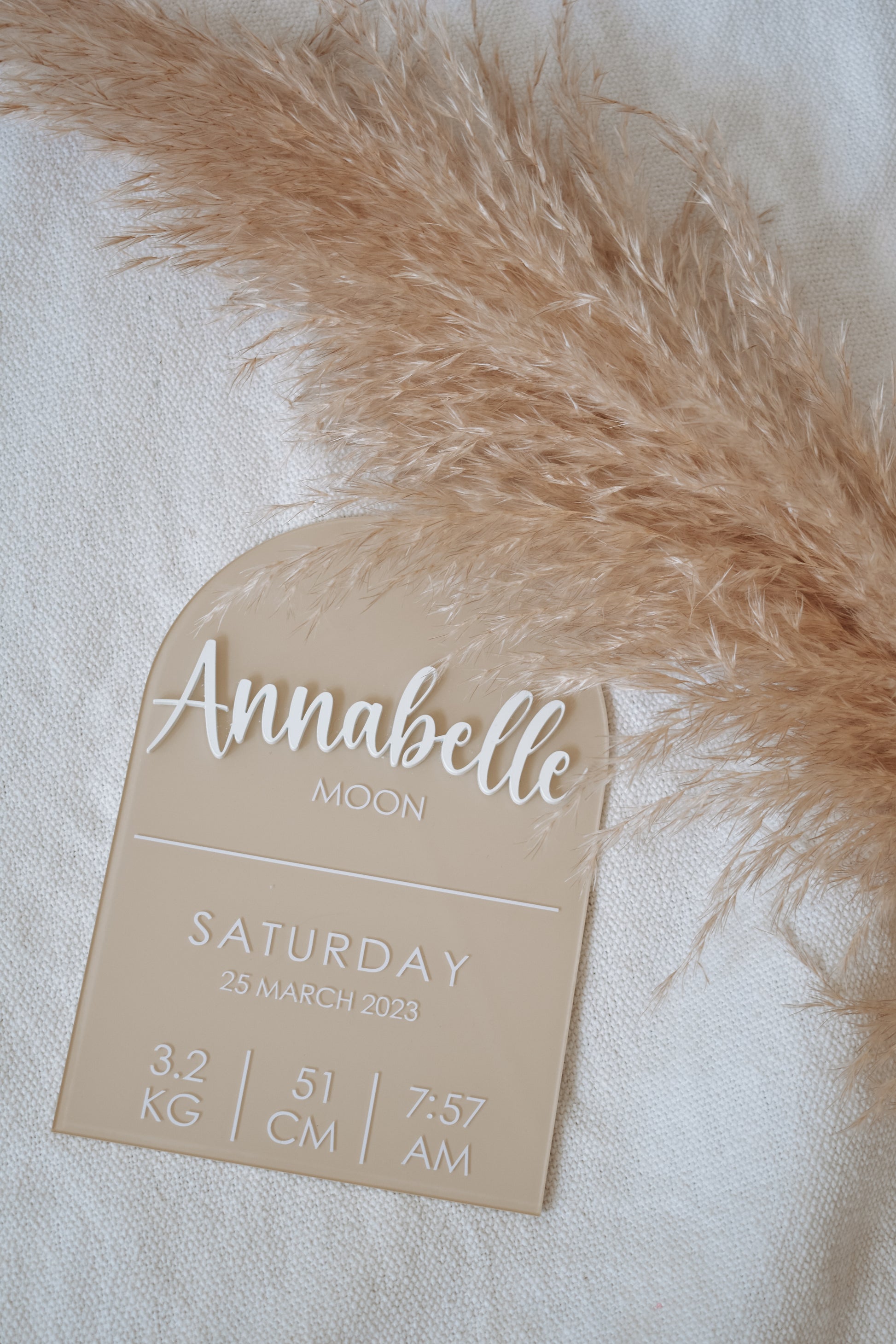 Celebrate your baby's arrival with our stunning Keepsake Arch. This personalised birth announcement display beautifully showcases your little one's name, birth date, weight, length, and time of birth – creating a treasured keepsake for years to come.